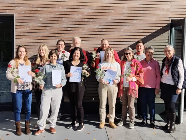 9 Seminarabsolvent/-innen bekamen ihr Zertifikat überreicht und bereiteten sich für den Kursbeginn vor. In Vorfreude auf eine erfolgreiche Arbeit in Kärnten wünschen wir das Allerbeste und gratulieren herzlich! 4 weitere Absolventinnen der Kärntner Ausbildung bereiten sich auf ihre Prüfung im nächsten Jahr vor.